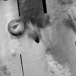 Acquisition date 08 September 2012 Local Mars time 15:56 Latitude (centered) -61.730° Longitude (East) 205.008° Spacecraft altitude 250.4 km (155.6 miles) Original image scale range 50.1 cm/pixel (with 2 x 2 binning) so objects ~150 cm across are resolved Map projected scale 50 cm/pixel and North is up Map projection Equirectangular Emission angle 1.5° Phase angle 79.3° Solar incidence angle 80°, with the Sun about 10° above the horizon Solar longitude 168.5°, Northern Summer For non-map projected images North azimuth: 98° Sub-solar azimuth: 36.9° | JPEG Black and white map projected non-map IRB color map projected non-map Merged IRB map projected Merged RGB map projected RGB color non-map projected JP2 Black and white map-projected (176MB) IRB color map-projected (101MB) JP2 EXTRAS Black and white map-projected (65MB) non-map (113MB) IRB color map projected (25MB) non-map (111MB) Merged IRB map projected (188MB) Merged RGB map-projected (168MB) RGB color non map (99MB) | BONUS 4K (TIFF) 8K (TIFF) 10K (TIFF) ADDITIONAL INFORMATION B&W label Color label Merged IRB label Merged RGB label EDR products HiView NB IRB: infrared-red-blue RGB: red-green-blue About color products (PDF) Black & white is 5 km across; enhanced color about 1 km For scale, use JPEG/JP2 black & white map-projected images USAGE POLICY All of the images produced by HiRISE and accessible on this site are within the public domain: there are no restrictions on their usage by anyone in the public, including news or science organizations. We do ask for a credit line where possible: NASA/JPL-Caltech/UArizona POSTSCRIPT NASA’s Jet Propulsion Laboratory, a division of the California Institute of Technology in Pasadena, Calif., manages the Mars Reconnaissance Orbiter for NASA’s Science Mission Directorate, Washington. The HiRISE camera was built by Ball Aerospace and Technology Corporation and is operated by the University of Arizona. |