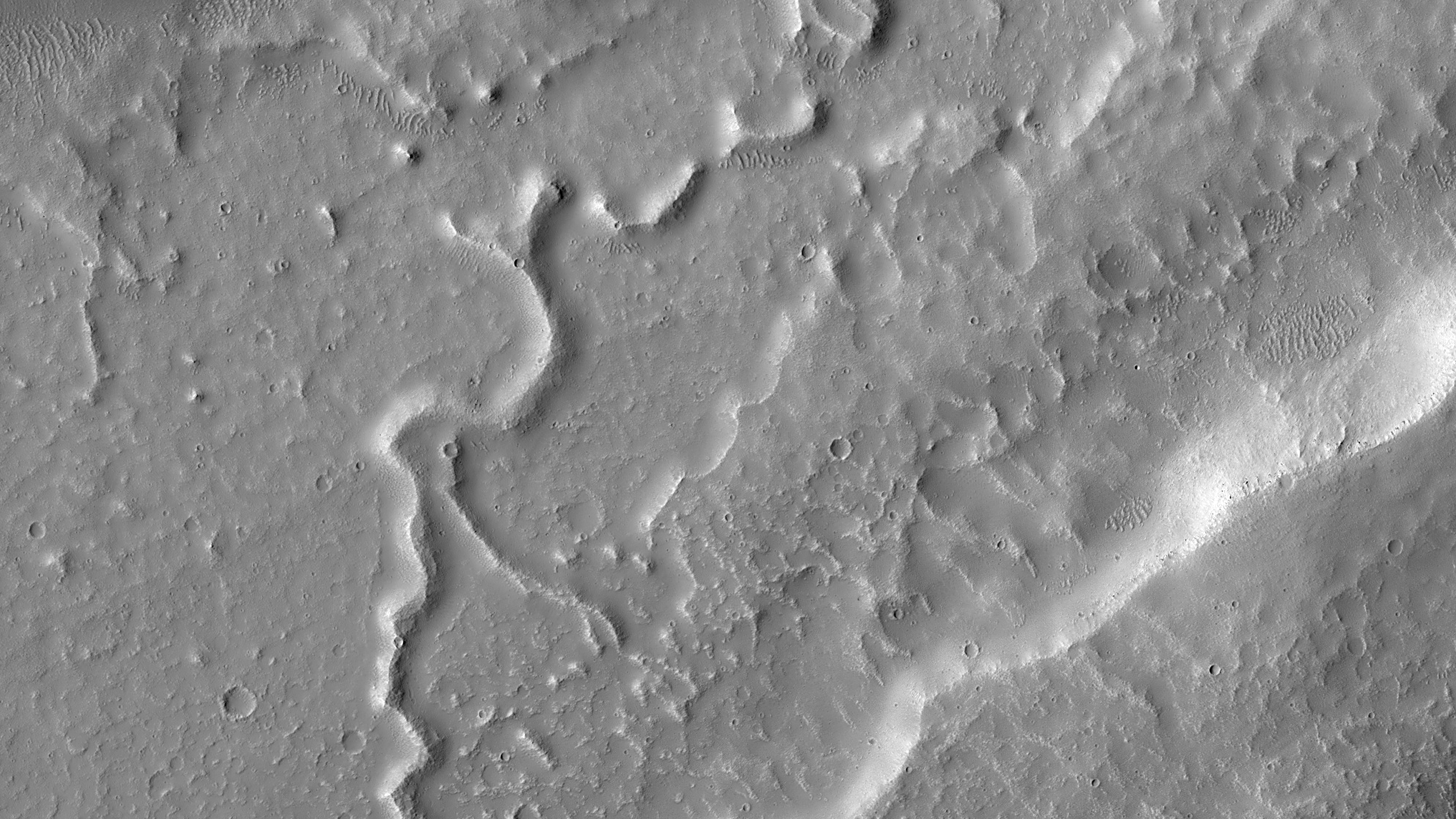 | Acquisition date 21 July 2025 Local Mars time 15:21 Latitude (centered) 34.556° Longitude (East) 267.972° Spacecraft altitude 286.8 km (178.2 miles) Original image scale range 57.7 cm/pixel (with 2 x 2 binning) so objects ~173 cm across are resolved Map projected scale 50 cm/pixel and North is up Map projection Equirectangular Emission angle 5.7° Phase angle 50.9° Solar incidence angle 45°, with the Sun about 45° above the horizon Solar longitude 113.6°, Northern Summer For non-map projected images North azimuth: 97° Sub-solar azimuth: 5.5° | JPEG Black and white map projected non-map IRB color map projected non-map Merged IRB map projected Merged RGB map projected RGB color non-map projected JP2 Black and white map-projected (208MB) IRB color map-projected (122MB) JP2 EXTRAS Black and white map-projected (110MB) non-map (141MB) IRB color map projected (40MB) non-map (100MB) Merged IRB map projected (217MB) Merged RGB map-projected (200MB) RGB color non map (93MB) | BONUS 4K (TIFF) 8K (TIFF) 10K (TIFF) ADDITIONAL INFORMATION B&W label Color label Merged IRB label Merged RGB label EDR products HiView NB IRB: infrared-red-blue RGB: red-green-blue About color products (PDF) Black & white is 5 km across; enhanced color about 1 km For scale, use JPEG/JP2 black & white map-projected images USAGE POLICY All of the images produced by HiRISE and accessible on this site are within the public domain: there are no restrictions on their usage by anyone in the public, including news or science organizations. We do ask for a credit line where possible: NASA/JPL-Caltech/UArizona POSTSCRIPT NASA’s Jet Propulsion Laboratory, a division of the California Institute of Technology in Pasadena, Calif., manages the Mars Reconnaissance Orbiter for NASA’s Science Mission Directorate, Washington. The HiRISE camera was built by Ball Aerospace and Technology Corporation and is operated by the University of Arizona. |