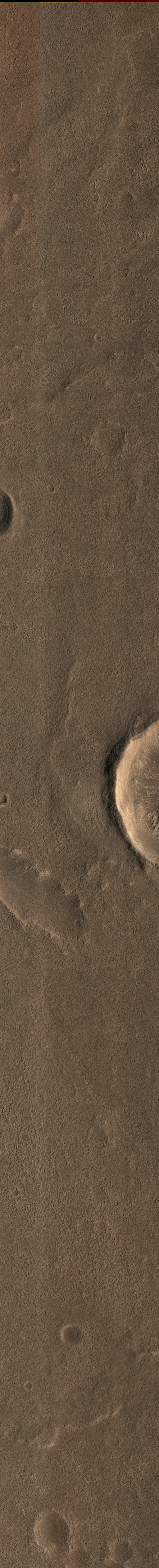 | Acquisition date 09 September 2025 Local Mars time 15:23 Latitude (centered) 35.370° Longitude (East) 19.153° Spacecraft altitude 292.6 km (181.9 miles) Original image scale range 61.0 cm/pixel (with 2 x 2 binning) so objects ~183 cm across are resolved Map projected scale 50 cm/pixel and North is up Map projection Equirectangular Emission angle 17.4° Phase angle 66.3° Solar incidence angle 49°, with the Sun about 41° above the horizon Solar longitude 137.4°, Northern Summer For non-map projected images North azimuth: 97° Sub-solar azimuth: 358.2° | JPEG Black and white map projected non-map IRB color map projected non-map Merged IRB map projected Merged RGB map projected RGB color non-map projected JP2 Black and white map-projected (177MB) IRB color map-projected (58MB) JP2 EXTRAS Black and white map-projected (95MB) non-map (113MB) IRB color map projected (23MB) non-map (45MB) Merged IRB map projected (173MB) Merged RGB map-projected (165MB) RGB color non map (86MB) |