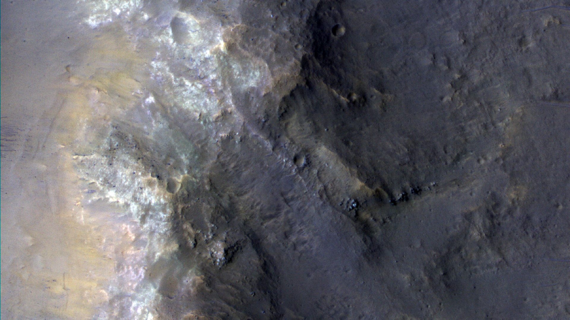 | Acquisition date 30 November 2025 Local Mars time 15:48 Latitude (centered) -10.346° Longitude (East) 329.530° Spacecraft altitude 263.8 km (164.0 miles) Original image scale range 53.1 cm/pixel (with 2 x 2 binning) so objects ~159 cm across are resolved Map projected scale 50 cm/pixel and North is up Map projection Equirectangular Emission angle 6.8° Phase angle 64.4° Solar incidence angle 58°, with the Sun about 32° above the horizon Solar longitude 180.8°, Northern Autumn For non-map projected images North azimuth: 97° Sub-solar azimuth: 12.8° | JPEG Black and white map projected non-map IRB color map projected non-map Merged IRB map projected Merged RGB map projected RGB color non-map projected JP2 Black and white map-projected (110MB) IRB color map-projected (38MB) JP2 EXTRAS Black and white map-projected (58MB) non-map (99MB) IRB color map projected (15MB) non-map (39MB) Merged IRB map projected (113MB) Merged RGB map-projected (120MB) RGB color non map (72MB) | BONUS 4K (TIFF) 8K (TIFF) 10K (TIFF) ADDITIONAL INFORMATION B&W label Color label Merged IRB label Merged RGB label EDR products HiView NB IRB: infrared-red-blue RGB: red-green-blue About color products (PDF) Black & white is 5 km across; enhanced color about 1 km For scale, use JPEG/JP2 black & white map-projected images USAGE POLICY All of the images produced by HiRISE and accessible on this site are within the public domain: there are no restrictions on their usage by anyone in the public, including news or science organizations. We do ask for a credit line where possible: NASA/JPL-Caltech/UArizona POSTSCRIPT NASA’s Jet Propulsion Laboratory, a division of the California Institute of Technology in Pasadena, Calif., manages the Mars Reconnaissance Orbiter for NASA’s Science Mission Directorate, Washington. The HiRISE camera was built by Ball Aerospace and Technology Corporation and is operated by the University of Arizona. |