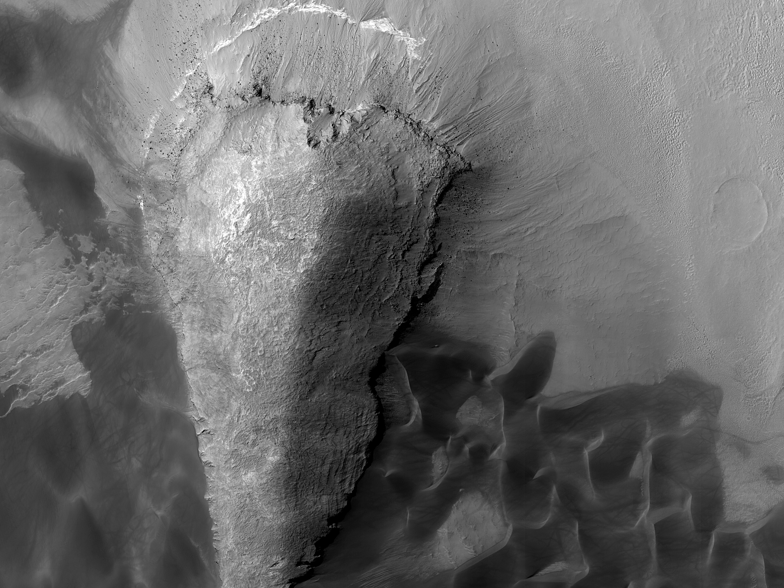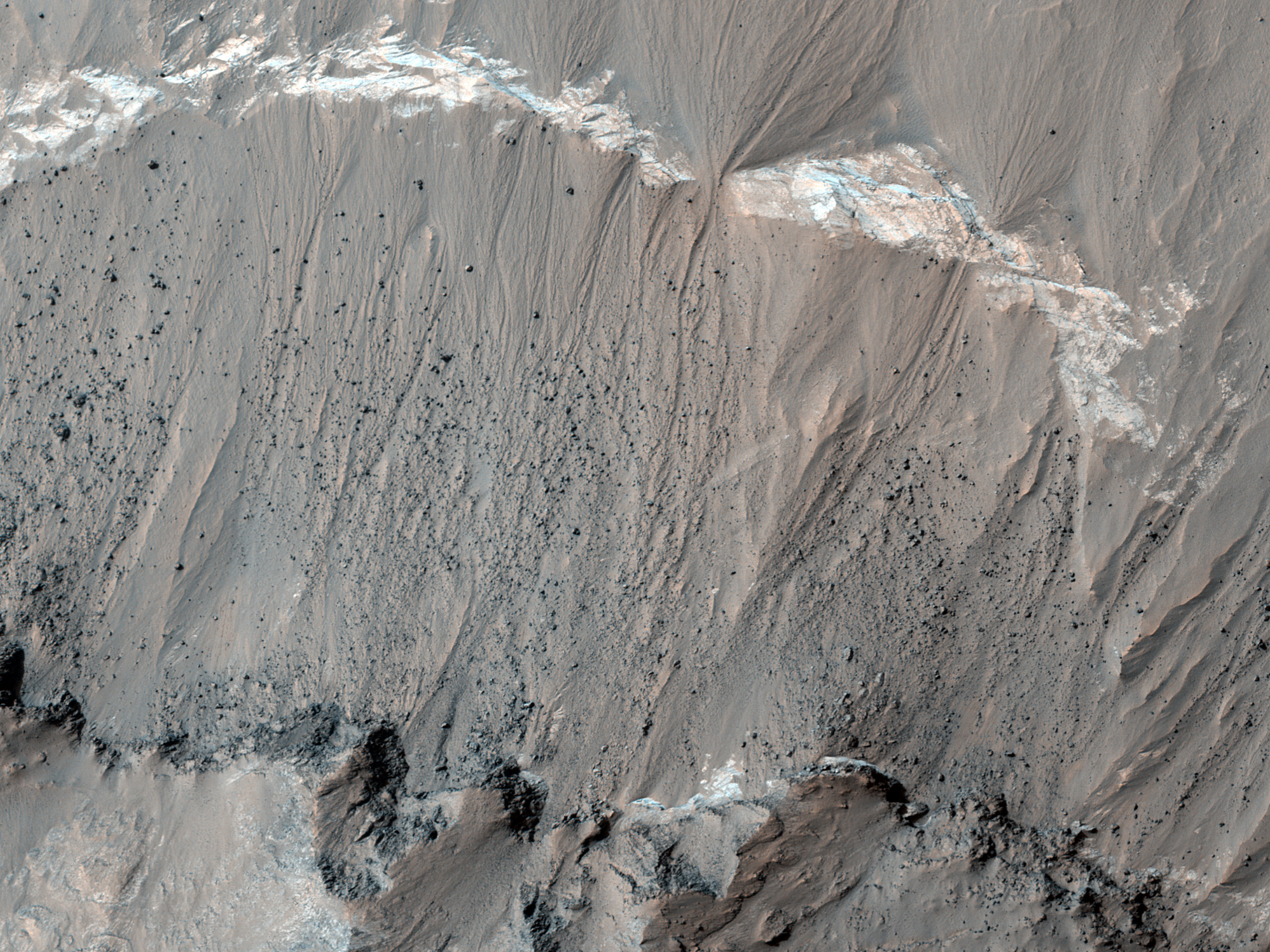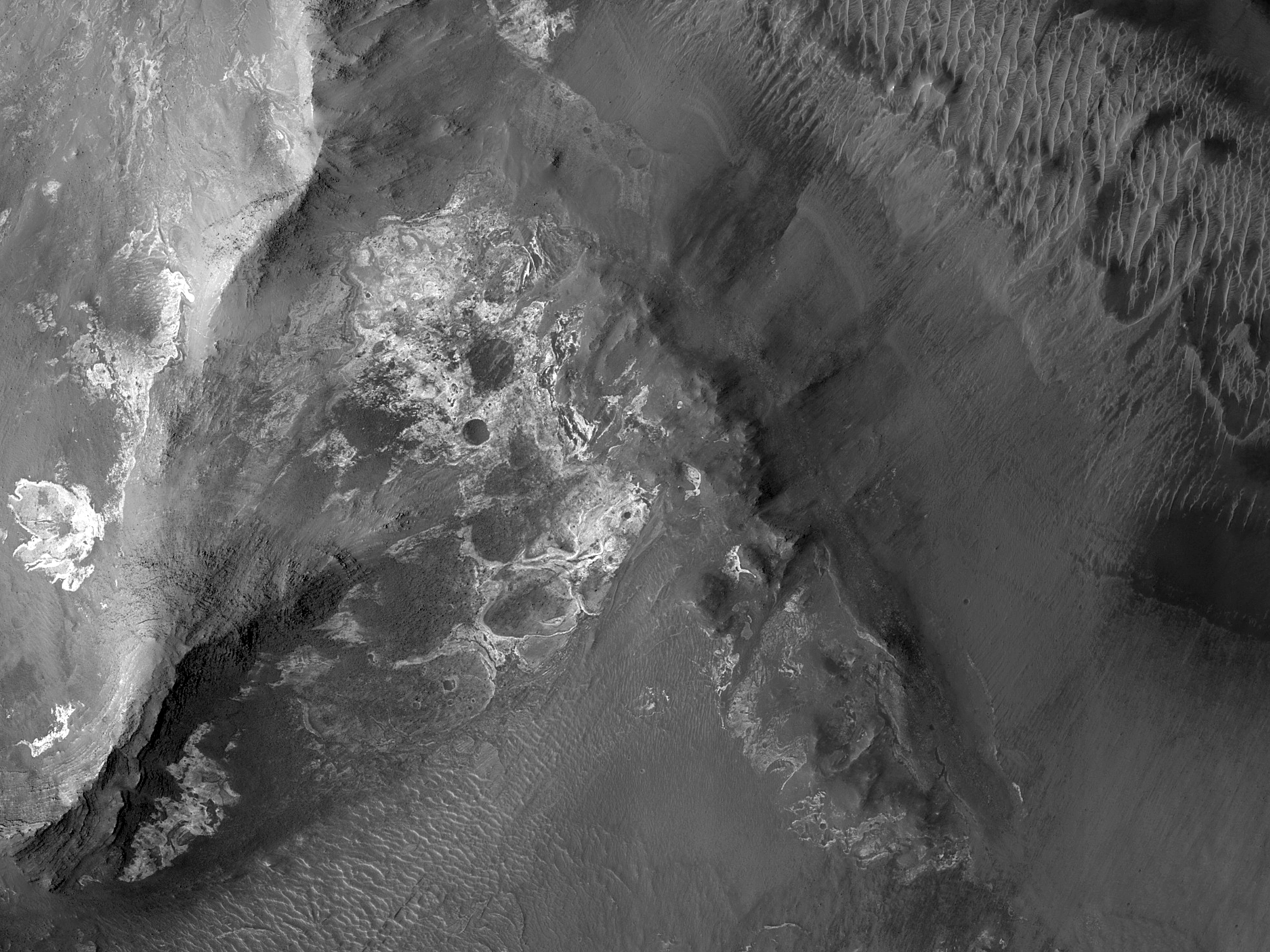 This observation features a series of interstratified valleys and inverted channels at the western end of the southwestern basin in Melas Chasma. Melas is part of the largest canyon system on Mars, Valles Marineris. At only 563 kilometers long (349 miles) Melas is not the longest canyon, but it is the widest.