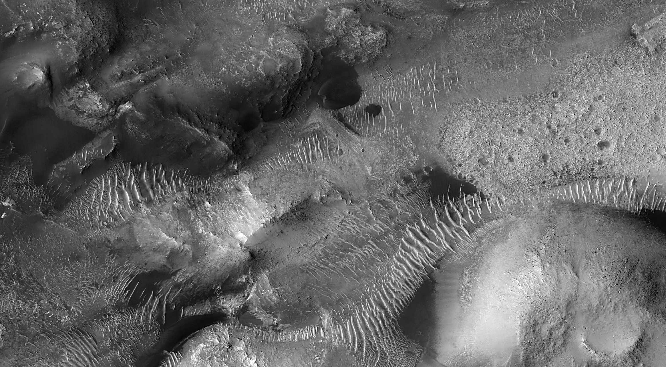 These dark, eroded rocks may be the source for some of these Syrtis Major sand dunes. Our image was suggested by a high school student enrolled in the Jefferson County Executive Internship program in Colorado in 2023, one of many public outreach programs the HiRISE Team engages in.