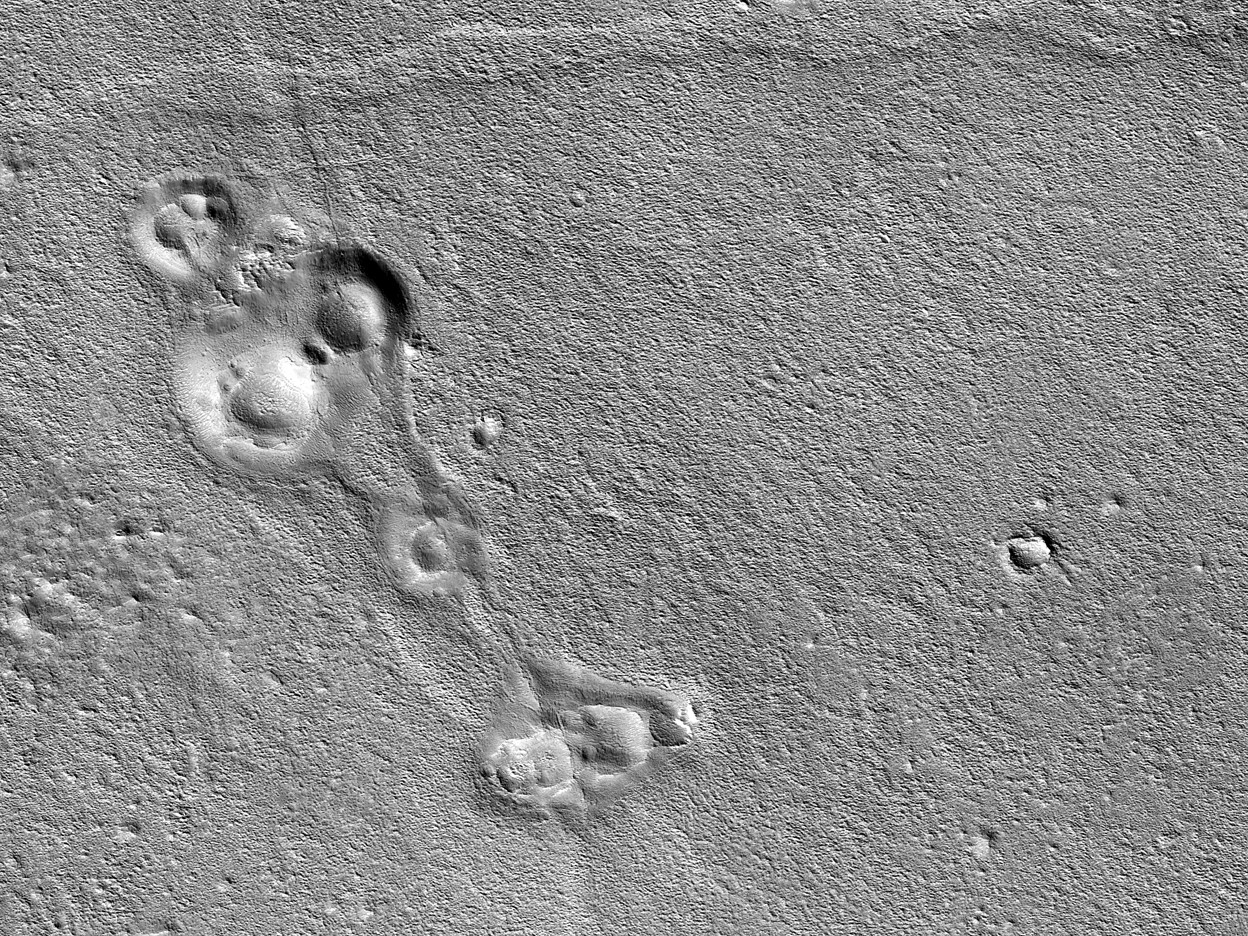 The objective of this observation is to examine a group of cones that are in a shallow valley. Some have suggested that these features are mud volcanoes. These are in locations where watery sediments seep onto the surface. Because of Mars’ low temperatures and pressures, the mud quickly freezes.