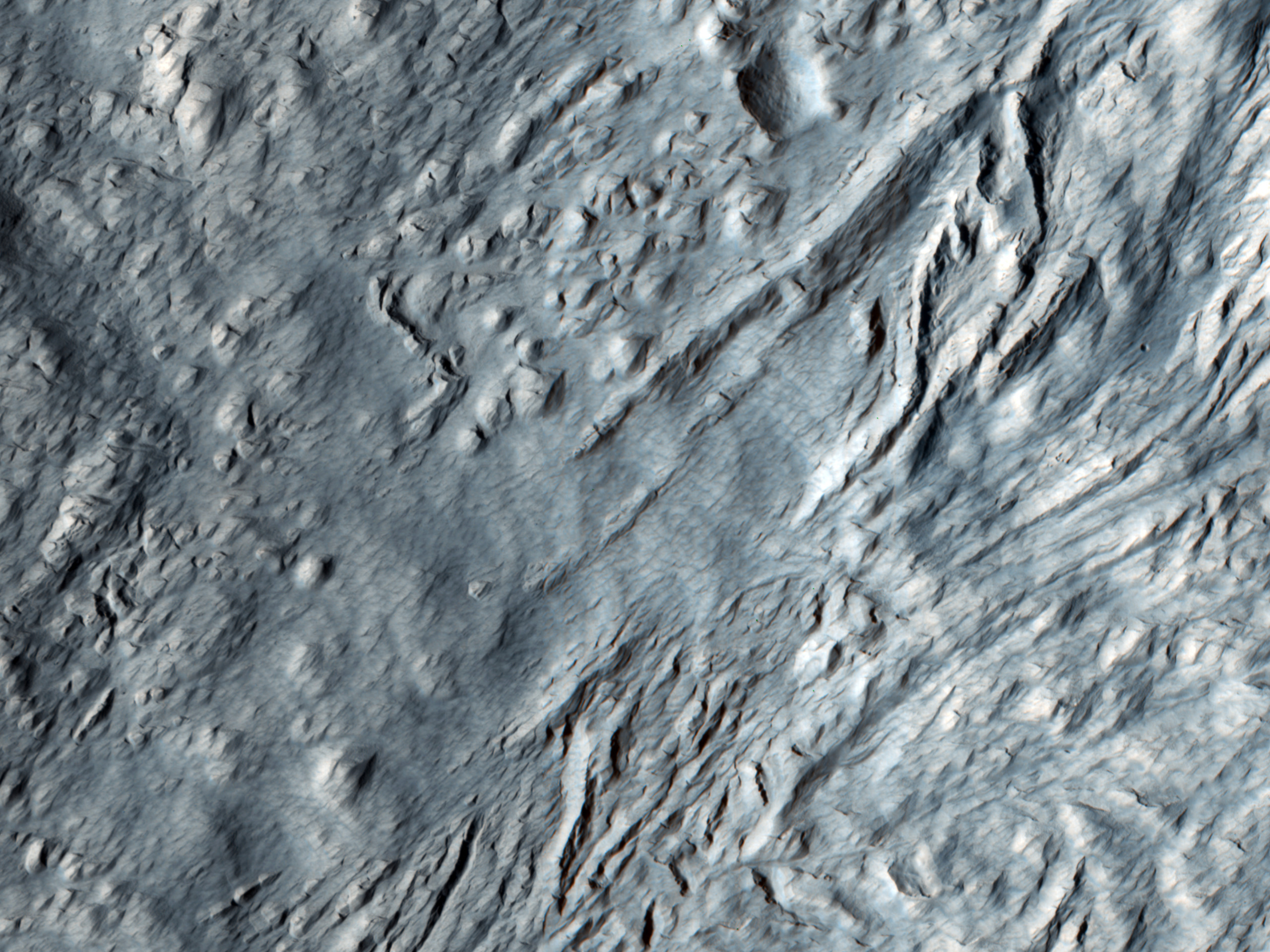 High-resolution imaging of this formation will allow detailed analysis of glacial flow and retreat history of this unusually dense moraine assemblage, and how these structures relate to the surface textures of adjacent degraded viscous flow features. Moraines are distinct ridges or mounds of debris that are laid down directly by a glacier or pushed up by it.